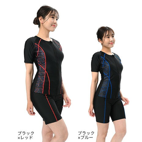リュウナ(Ryuna)(レディース)フィットネス水着 レディース 水泳 サイドライン柄半袖 GR2214LB