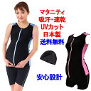 マタニティー水着 妊婦用 フィットネス水着 レディース フィットネス 水着 セパレート 水着 ノースリ 大きいサイズ 競泳水着 女性 体型カバー スイミング ルモード UVカット キャップ付 3点セット 吸汗速乾 めくれ防止 送料無料 ML 黒 ブラック 10153