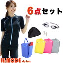 フィットネス水着 レディース セパレート水着 大きいサイズ 半袖 競泳水着 女性 スイムウェア 体型カバー セパレート水着 スイミング ルモード かわいい キャップ ゴーグル スイムバック 耳栓付 6点セット めくれ防止 黒 ブラック ピンク ブルー グリーン オレンジ pgc10106