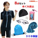 フィットネス 水着 レディース セパレート水着 キャップ フィットネス水着 体型カバー 半袖 フィットネス 水泳 競泳水着 かわいい 袖あり ゴーグル タオル バッグ 耳栓 スマホケース 8点セット 黒 ブラック ピンク ブルー グリーン オレンジ めくれ防止 8ten-10106