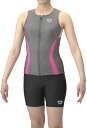 アリーナ フィットネス水着 レディース Oサイズ AS5SWF41L グレー×ピンク GYPK ファスナー付きセパレート すらっとセパ /2026SS