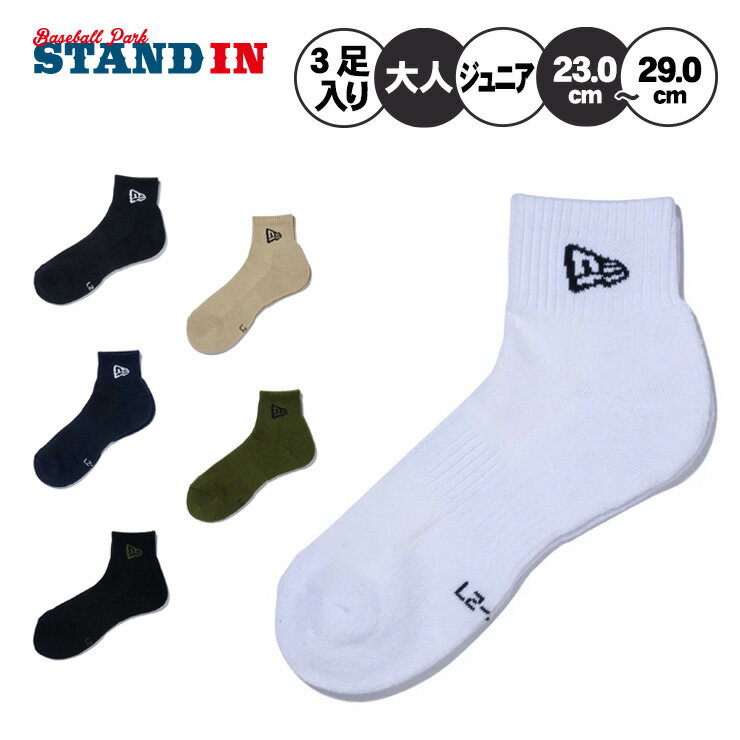 ニューエラ ner era スポーツソックス アンクルソックス 足首丈 3足入り ショートソックス 大人 ジュニア メンズ ユニセックス 14518186 14518188 14518189 14518191 靴下 一般 子供 野球 バスケ テニス バトミントン フットサル ランニング トレーニング