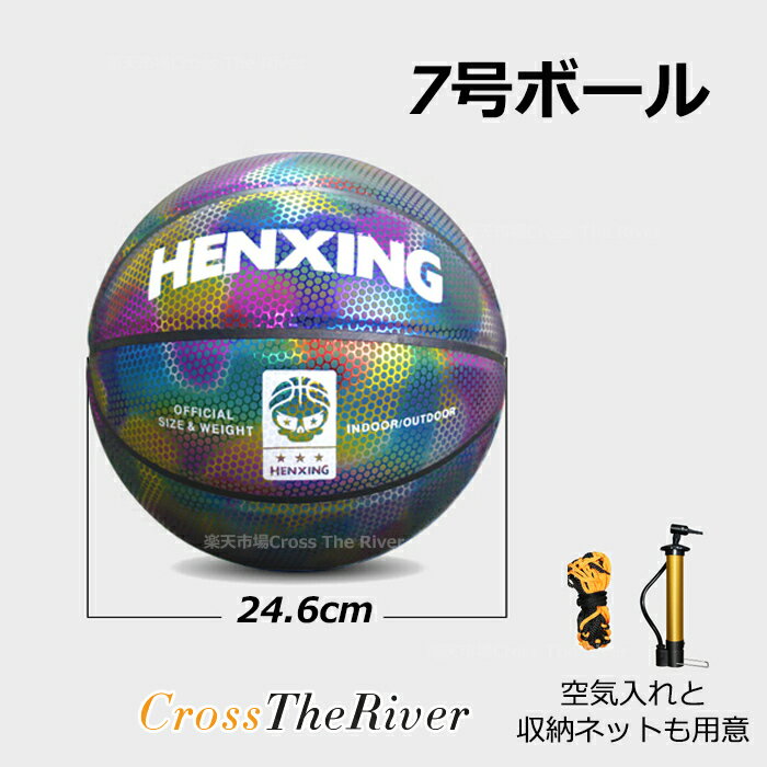 バスケットボール 7号 発光体 レザー 学校 部活 クラブ 試合 練習 ボール 屋外用 屋内用 空気入れと収納ネット付き