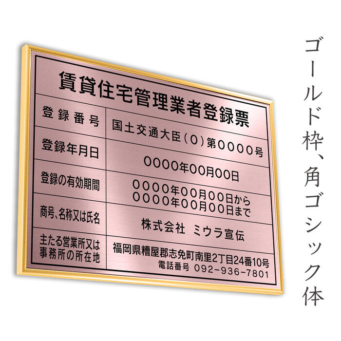賃貸住宅管理業者登録票 ローズ 送料無料 選べる4書体・4枠 撥水加工 錆びない 看板 法定サイズクリア ヘアライン仕様 540mm×380mm