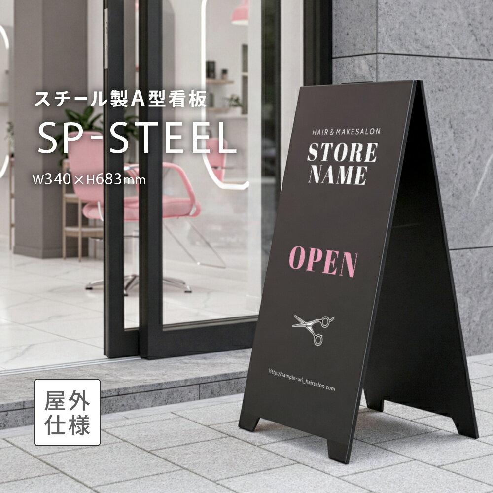 屋外看板 スタンドプレート SP-スチール黒 ブラック 両面 サイズ:D360×W340×H683mm マグネット使用可能 折りたたみ式 持ち運び シンプル おしゃれ スタンド看板 A型看板 飲食店 カフェ レストラン バー 薬局 ドラッグストア 美容院