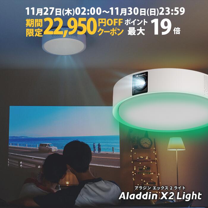【期間限定29,850円OFFクーポン発行中】Aladdin X2 Plus アラジン エックス2 プラス 6畳でも100インチ プロジェクター売上No.1 短焦点 900 ANSIルーメン LEDシーリングライト スピーカー フルHD 天井 照明 ホームシアター 映画 テレビ bluetooth