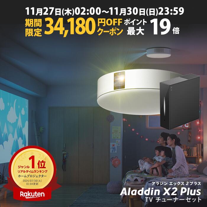 【期間限定34,180円OFFクーポン発行中】Aladdin X2 Plus 推奨テレビチューナーセット アラジン エックス2 プラス もう、テレビは不要 プロジェクター売上No.1 短焦点 LEDシーリングライト スピーカー フルHD 天井 照明 ホームシアター 映画 XIT-AIR120CW