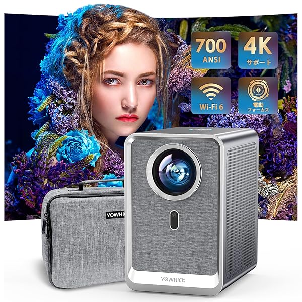YOWHICKプロジェクター家庭用小型700ANSI30000ルーメン高輝度WIFI6超高速4K対応1080Pプロジェクター家庭用双方向Bluetooth5.312WHIFIスピーカー内蔵300イン大画面ホーム50%ズーム機能