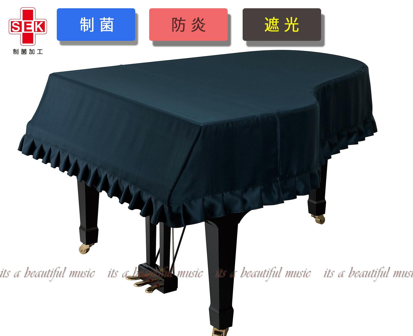 【its】Rakuten出店17年感謝!ピアノクロス同梱プレゼント中です!グランドピアノカバー(フルカバー)甲南 THREE STAR(制菌・防炎・遮光)(黒色)【奥行080〜090cm未満/C3/G3/GX-2/GX-3/RX-3/SK-3/D-083等】(甲南制菌・防炎カバーシリーズ)