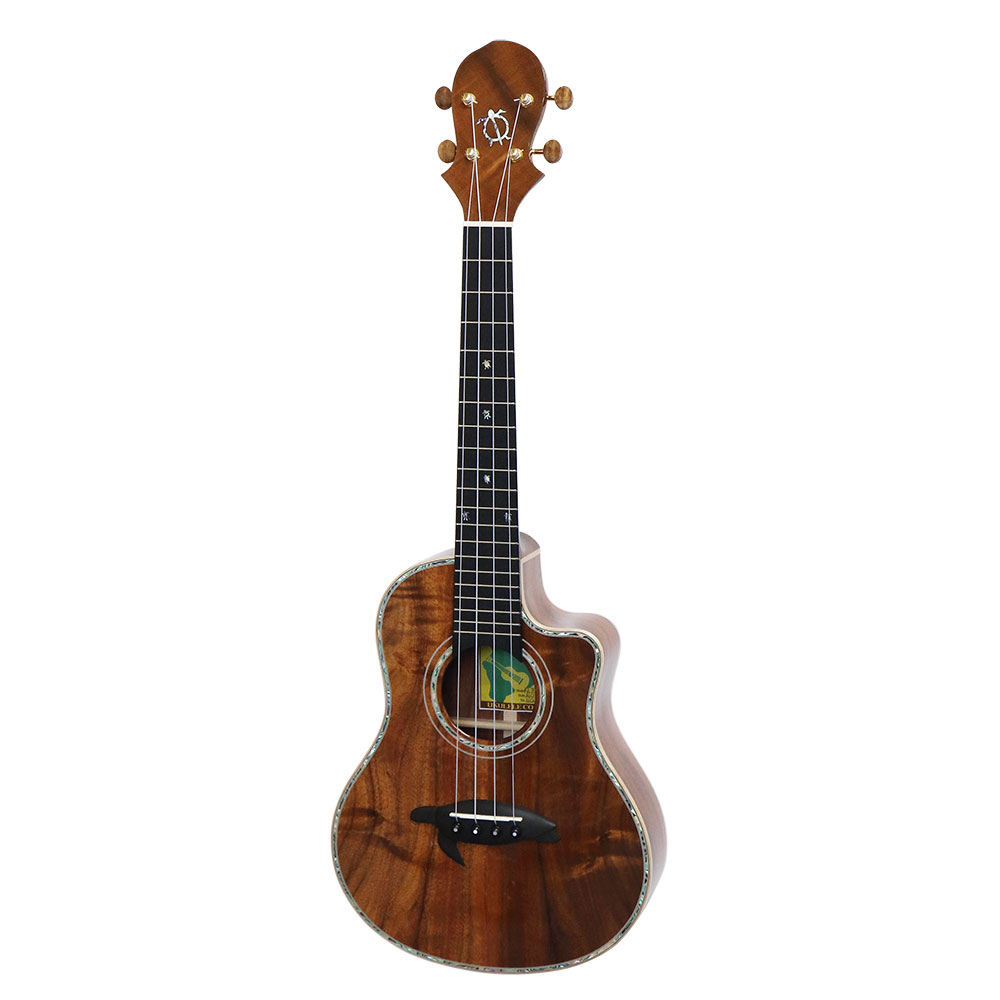 ウクレレ BIG ISLAND KX-TRCG テナーウクレレHONU Headstock KX Deluxe SeriesBIG ISLAND KX Deluxe Seriesハワイのウミガメ「ホヌ」をイメージした独特な形状のヘッドデザインを持つBig Islandウクレレの中で最も高い人気を誇るKXシリーズのテナーウクレレ。ヘッドシェイプだけでなく、ポジションマークやブリッジにもホヌのデザインモチーフが使われています。ペグは安心感のあるGOTOH製オリジナルペグ。ペグボタンにはコア材を使用しています。カッタウェイ仕様。サイズ : テナーギアペグ/カッタウェイトップ、バック、サイド : 単板ハイグレードカーリーコア材ネック : マホガニー材指板 / ポジションマーク : エボニー材 / アバロン貝(ホヌ)ヘッド : ホヌオリジナル、アバロン貝インレイロゼッタ / パーフリング : アバロン貝 / アバロン貝ブリッジ : エボニー材ナット& サドル : 牛骨チューナー : GOTOH 製糸巻(ゴールド)、コアボタンスケール : 430mm(テナー)フィニッシュ : 光沢仕上げケース : ハードケース※天然素材のため木目や色見には個体差があります。