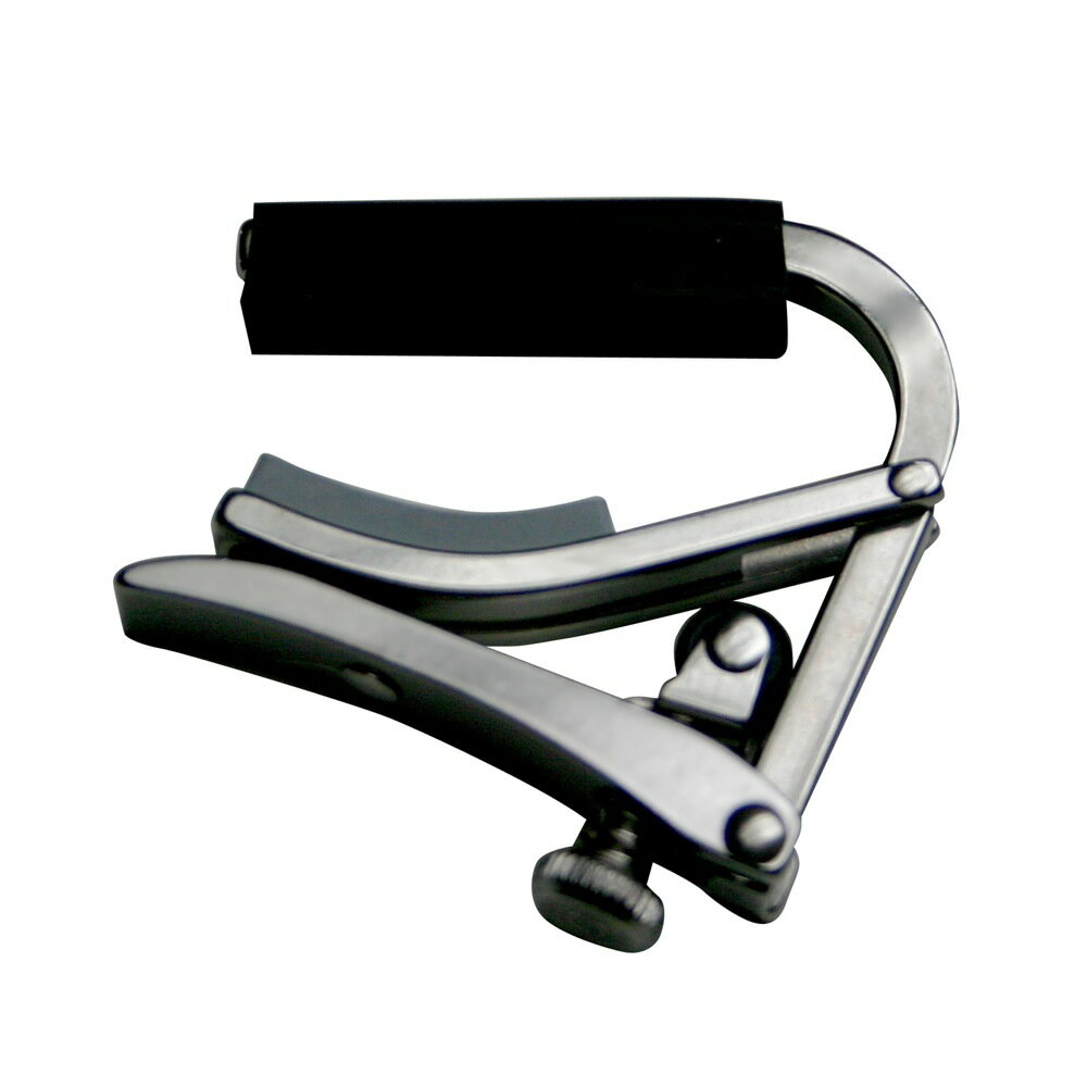 SHUBB S5 バンジョーカポ デラックスフラット指板のバンジョーに対応するデラックスカポです。オリジナルシャブカポを進化させたDELUXEは、ステンレス素材を採用し耐久性だけでなく見た目の美しさにも磨きがかかりました。さらに、新しく設計されたローラー内蔵レバーにより耐久性の向上と装脱着時の操作性をスムーズになっています。 ステンレス