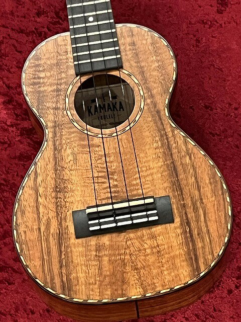 【ショッピングクレジット無金利】&【超低金利キャンペーン】48回払いまで金利手数料0%!! ------------------------------------------------------------------------- 【個体特徴】 ・極上の杢目美。「虎目」が織りなす唯一無二の外観 この個体の最大の魅力は、見る者を圧倒する美しい「虎目(トラ杢)」の出方。 トップだけでなく、バック、さらにはヘッドに至るまで全面にくっきりと現れたトラ杢は、 まさに自然が描いた芸術です。 角度や光の加減によって表情を変えるその杢目は、立体感と深みを生み、手に取った瞬間から特別な 存在感を放ちます。 ここまで均整のとれたトラ杢が全体に現れている個体は非常に稀少で、外観にこだわるプレイヤーや コレクターにも自信を持っておすすめできます。 ・音が「鳴る」。豊かで深みある響き 見た目の美しさだけでなく、音色にも確かな説得力があります。 担当の主観にはなりますが、個体としての鳴りが非常に良く、弾いた瞬間に 空気を震わせるようなレスポンスを感じられる一本です。 中音域にしっかりと芯がありつつも、抜けの良い高音とふくよかな低音がバランス良く共存。 アルペジオでは透明感のある響きを、ストロークでは太く厚みのあるサウンドを奏でてくれます。 【HF-3DI】(KAMAKA テナーサイズ・デラックスシリーズ) ウクレレ愛好家の誰もが憧れるブランド「KAMAKA」から、テナーサイズのデラックスモデル 「HF-3DI」が入荷しました! このモデルは、シンプルなクラシックシリーズ(HF-3)に比べて、使用されている材、装飾、 そして音色までもがグレードアップしています。 「上質な素材と美しい装飾」 ボディには、美しい木目が印象的な高級グレードのカーリーハワイアンコアを贅沢に使用。 ブリッジと指板には、硬くて耐久性に優れた高級材エボニーを採用しています。 さらに、ボディの縁やサウンドホール周りには、ロープ風の装飾とローズウッドのバインディング&ロゼッタが 施されており、見た目にも高級感と上品さを演出しています。 モデル名の「I」は、スロテッドヘッド仕様であることを示しており、クラシックギターでおなじみの このヘッド形状が、個性的でインパクトのある外観を与えています。 「洗練された音色」 音の面でも、クラシックシリーズと比べてさらに深みと上品さが加わっています。 ウクレレらしい軽やかな音に加え、心に響くような豊かさと奥行きを感じさせる音色は、 弾き語りにもソロ演奏にもぴったり。幅広いプレイスタイルに対応できる一本です。 「テナーサイズの魅力」 KAMAKAといえば、ウクレレ弾きなら誰もが知るハワイの名門ブランド。 中でもテナーサイズは、世界で最も多く作られ、親しまれているサイズです。 単音のピッキングでもしっかりとした音量と伸びがあり、繊細な音色を楽しむのに最適。 ウクレレは小さいと思っている方も、テナーサイズであれば、体へのフィット感も抜群です。 【Kamaka】 2016年で100周年を迎えたカマカウクレレ。伝統を継承しつつ、新たな時代へと歩みを進めています。 100年以上にも及ぶ歴史を誇り、ウクレレ文化を支えてきた『KAMAKA UKULELE』。 現存するウクレレメーカーとしては、他の追随を許さないダントツの老舗メーカーです! ”ウクレレの基本・基準”とも言われているその音色は、世界中の多くのプレイヤーに愛され続けています。 初心者の方でも比較的扱い易く、馴染みのある“ウクレレらしい音色”は、長きにわたって伝統を築いてきた、 カマカウクレレならではの音色と言っても過言では有りません。 カマカウクレレはハワイアン音楽の歴史とも言われるほど、その土地の文化と長年にわたって 深く関わってきました。 創業は1916年。1世紀にも及ぶ歴史を誇る『KAMAKA UKULELE』ファクトリーは、オアフ島のホノルル市街 にあります。 創始者のサミュエル・カマカの言葉に“もし楽器を作って、ファミリーの名前を付けるなら、ガラクタは作るな” という言葉の意味するように、その理念、想いは代々確実に受け継がれ、変わることなく現在に至っています。 創業当初から、最高品質の楽器を作るという彼らの強い意志で生み出されてきたウクレレの素晴らしさは、 世界中のプレイヤーからの信頼が物語っています。 100年以上にも及ぶ歴史を歩み、ハワイのウクレレ文化を育んできたカマカ。その集大成でもある技術と 想いで生み出された1本のウクレレです! 是非このご縁をあなたに!! 【仕様】 サイズ:テナー トップ:ハワイアンコア単板(デラックスグレード) サイド&バック:ハワイアンコア単板(デラックスグレード) ネック:マホガニー 指板&ブリッジ:エボニー ヘッド突板:ハワイアンコア(デラックスグレード) ナット&サドル:タスク ペグ:SCHALLER GrandTune(ギヤタイプ)※1:18ギヤ比 フレット:14Fジョイント/18F ポジションマーク/インレイ:MOP(マザーオブパール)/ドット(3,5,7,10,12,15) ヘッドロゴ:MOP(マザーオブパール) トップ・バインディング/パーフリング:ローズウッド/ロープパターン(ロ