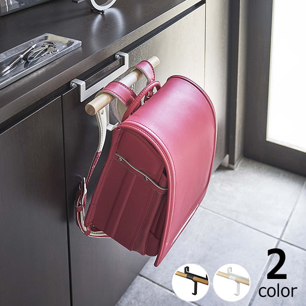 商 品 詳 細 玄関の下駄箱収納扉に簡単取付け! 用途に合わせて便利に使える、天然木のポールが美しい 下駄箱扉ランドセル&リュックハンガーです。 下駄箱収納扉に差し込むだけで、リュックやランドセルをしっかり掛けられる丈夫なスチール製のハンガーのできあがり。 カバンの定位置として利用する他にも、玄関先で身支度を整える時の一時置きとしてもお使いいただけます。 また、置き場所に困るお子様用バックや、体操着袋、上履き入れなどをまとめて置いておくのにも便利です。 中央にはフックも付いているの、これ一つで必要なものが全てスッキリと収納できます。 また、雨の日のお出かけ準備に雨具や傘などの一時掛けとしてお使いいただけます。(※濡れた物を直接かけないでください。) サイズ 本体:W26xD9.5xH16cm ハンガーサイズ:直径約2.5cm、幅約26cm 商品材質 本体:スチール(粉体塗装) バー:天然木(ラッカー塗装) 生産国 中国 耐荷重 約6kg 取り付け可能なドア ・ドアの幅:約18cm以上 ・ドアの厚さ:約1.6〜2.2cmまで ・ドアと上部との隙間:約3mm以上下駄箱扉ランドセル&リュックハンガー ランドセルを掛けられるドアハンガー ドアにかけるだけ 下駄箱収納扉に差し込むだけで、ランドセルやリュックのハンガーとして使えます。スチール製の丈夫なつくりで、天然木が美しいアクセントになっています。 肩ひもが掛けやすい 肩ひもが掛けやすい構造になっているので、毎日使うランドセル置き場にピッタリ。 幼稚園バッグや上履き袋などをかけても。 ハンガーも掛けられる ハンガーも掛けておけるので上着やレインコートなどの一時置きにも重宝します。 傘をかけて 傘をかけることもできます。折り畳み傘もループを掛けられるので便利。 山崎実業 ランドセル収納 一覧 カラーボックス横用 カラーボックス横用 下駄箱扉用 下駄箱扉用 ドア用2段 ドア用2段 ハンガーラック ハンガーラック