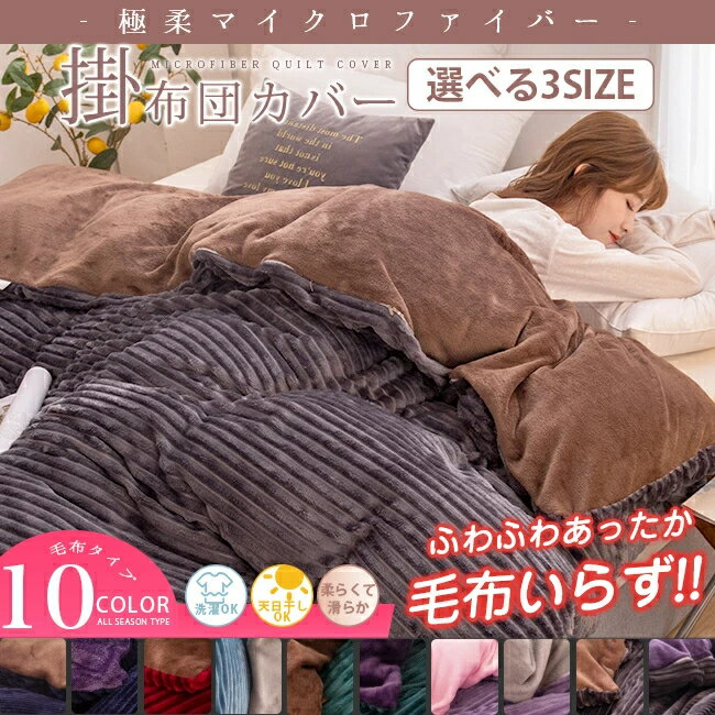 即納 掛け布団カバー ふわふわ 柔らかい 北欧 冬用 フリース マイクロファイバー 無地 ボーダー 光沢感 おしゃれ ダブル クイーン キング 暖かい 厚手 毛布にも使える 寝具 ふとんカバー 表裏バイカラー かわいい 送料無料