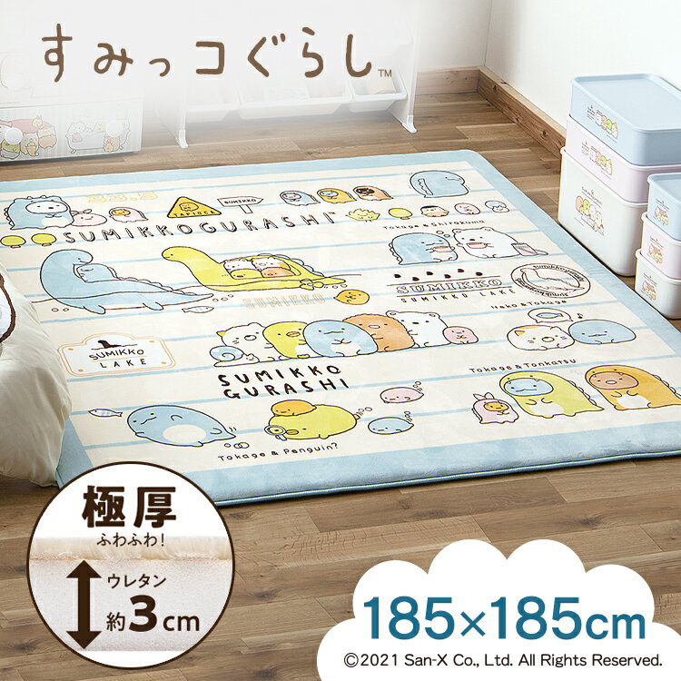 ラグ 厚手 北欧 カーペット ラグ カーペット すみっコぐらし クッションラグ CRSU-1818送料無料 マット 絨毯 敷物 クッションラグ 子供用 キッズ 子供部屋 遮音 防音 すべり止め付き ホットカーペット対応 185×185 アイリスオーヤマ