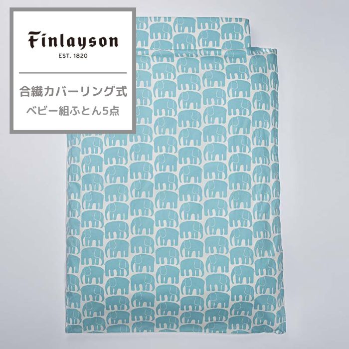 東京西川 フィンレイソン 合繊カバーリング式ベビー組ふとん5点 日本製 キッズ ベビー プレゼント ギフト お祝い finlayson ゾウ柄 ゾウ 北欧 おしゃれ かわいい まくら 掛けふとん 掛け 敷き 敷きふとん カバー シーツ 布団 ふとん 枕 厚手 薄手 寝具 LF59282010 FI9661