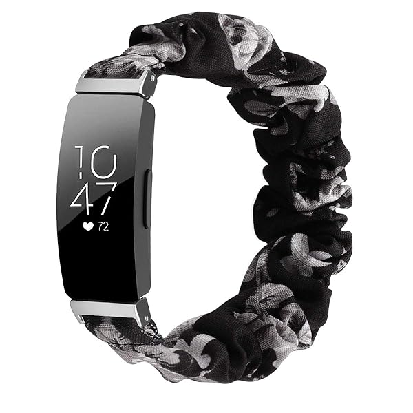 For Fitbit Inspire 2/ Inspire HR/Inspire/Ace 2に対応したかわいいゴムバンド 弾性布柄プリント生地リストバンド ブレスレット ウォッチバンド Inspire 2女の子用 (Grey flower*black