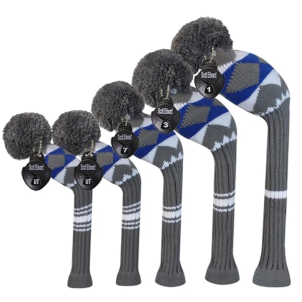 ダークカラー個別ゴルフヘッドカバー5枚セットセット (Grey Blue White Alien Pattern)