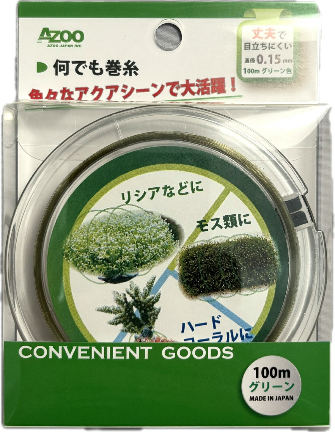高品質な日本製!色々なアクアシーンで活躍! 水草(リシア、モス類など)を流木や岩、 プレートなどに巻きつけて固定させ、浮いた り散らばるのを防ぐために使えます。 また、 活着性のあるモス類で活着するまで一時的に 巻きつけておくことにも使えます。 ハードコーラルなどをライブロックへ活着させるまでの間や、固定させる時などに使えます。