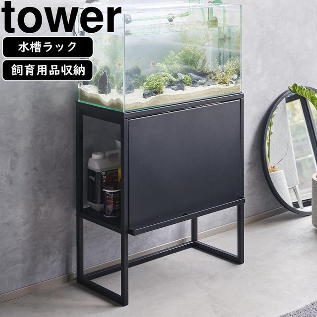 水槽台 山崎実業 正規品 tower タワー 水槽ラック 飼育備品を収納できる水槽台 60cmサイズ大型水槽用ラック 水槽棚 水槽スタンド ブラック