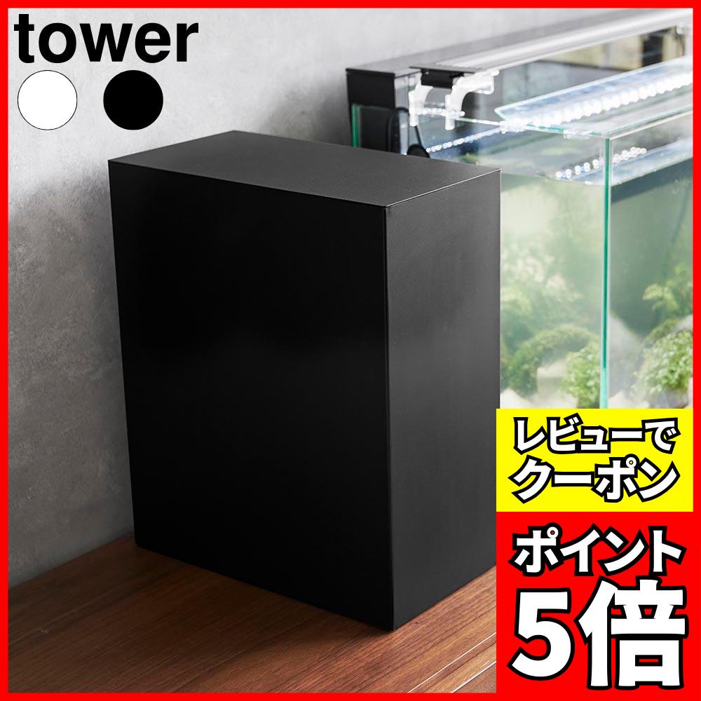 【特典付き】[ 水槽横収納ボックス タワー ]山崎実業 tower アクアリウム 収納 水槽 ラック 2段 餌 ツールボックス シンプル 蓋付き 二段 ケーブルボックス 電源タップ 北欧 おしゃれ モノトーン yamazaki 公式 ブラック ホワイト 1891 1892 【ポイント5倍 送料無料】