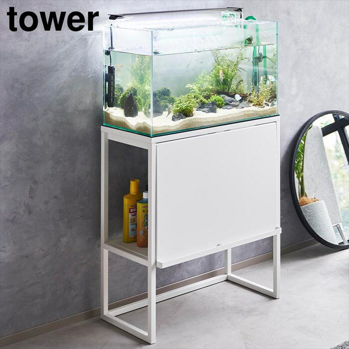 【特典付き】[ 水槽ラック タワー ]山崎実業 tower 水槽 60cm 水槽台 水槽スタンド キャビネット アクアリウム 収納 棚 水槽用 ラック 2段 餌 シンプル 二段 フラップ扉 おしゃれ モノトーン yamazaki 公式 ブラック ホワイト 1961 1962 【ポイント5倍 送料無料】
