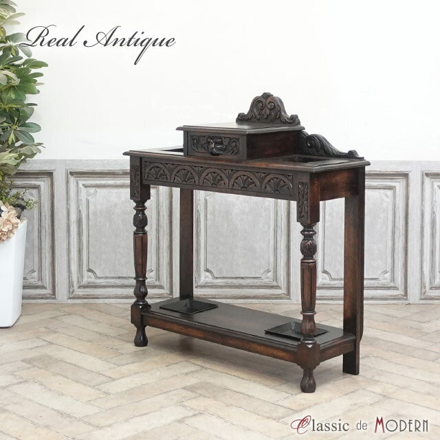 品名・品番 antique57523 ステッキスタンド 1900年頃 オーク材 イギリス サイズ W 92.5 x D 30.5 x H 94 (天板高 82.5) cm 商品について ライオンをモチーフにした彫刻が印象的なステッキスタンドです。 そのクオリティの高さ、味わい深さは本物アンティークならではです! 既製品では出すことのできない素敵な表情を出してくれていますよね。 ご自宅だけでなく、店舗様の什器として、いろいろなシーンで使っていただけます。 是非あなたのセンスで輝かせてみてください。 下棚板い合わせ目のすき間がございます。 こちらのアイテムは・・・ 『本物』アンティーク家具につき、在庫は1点限り 次回再入荷がないのがアンティーク家具。 お気に入りのものが見つかったら、お早めにご検討下さい 配送について 配送:家財便 Cランク 配送方法については、こちらをご参照ください。 ご注意ください 在庫数は随時チェックしておりますが、他サイトでの販売も行っておりますので 売約在庫切れになる場合がございます。あらかじめご了承ください。 送料は買い物かご合計時に0円となりますが、弊社では大小さまざまな商品を扱っております。 ご注文メール確認後に送料を含めたご注文明細をご案内いたします。 ※離島につきましては、配送可能かをご注文前にお問い合わせくださいませ。 お問い合わせ先 クラシックデモダン 電話:0748-64-9027 FAX:0748-83-1184 メール:store@classicdemodern.com