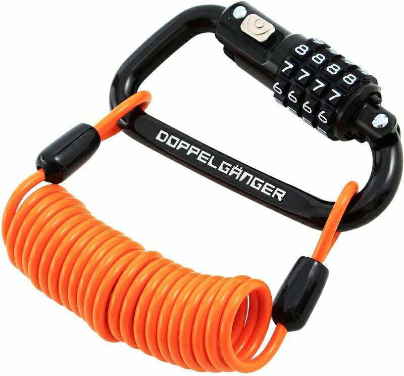 ネコポス発送【ドッペルギャンガー】 【4582474894645】ダイヤルコンボカラビナロック DKL151-BK 軽量 コンパクト 多用途 カラビナ型ロック ダイヤル式 自転車錠 DKL151-BK ワイヤー ワイヤーロック