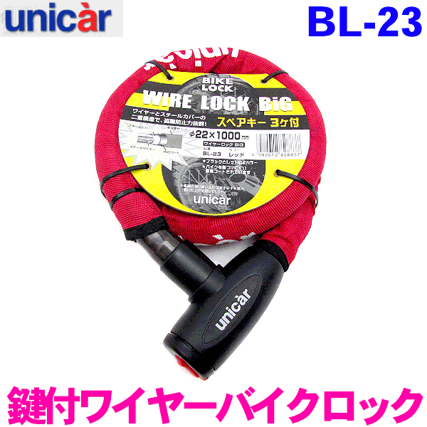ユニカー工業 バイク用 ワイヤーロック ビッグ1000 [BL-23]レッド 鍵穴部分キャップ付き盗難防止 バイク 自転車 バイクロック パーツキング