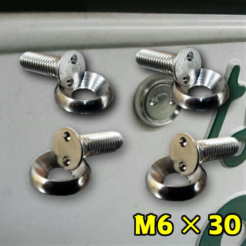 少し長め【盗難防止率UP】(ねじ4本+ワッシャー4枚) グレードアップ ナンバープレート 盗難防止 セキュリティ ボルト M6×30 車・バイクのナンバープレート用 ステンレス(シルバー)レンチ無し