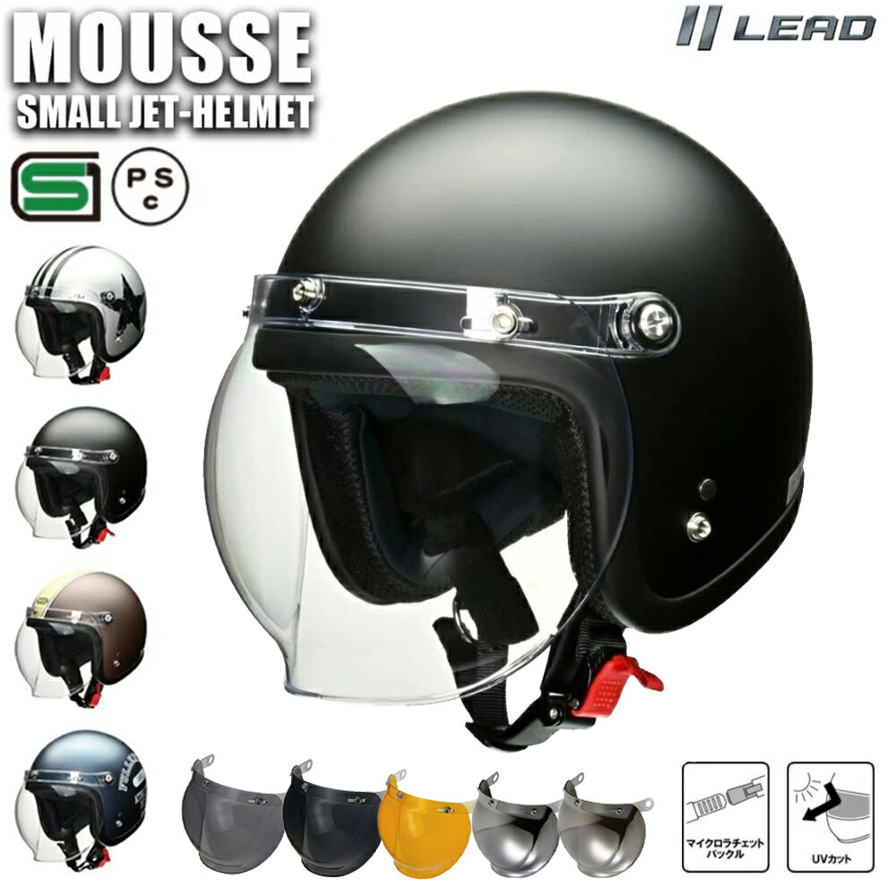 バイク ヘルメット ジェット シールド付き ジェットヘルメット リード工業 MOUSSE ムース 4カラー FREEサイズ (57-60cm未満) メンズ レディース 男女兼用 SG規格 全排気量対応 バイク用