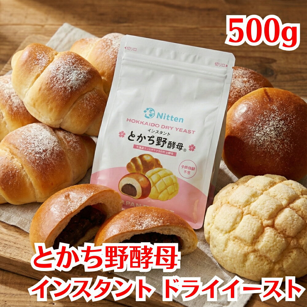 【楽天1位!】 とかち野酵母 ドライイースト 500g インスタント 酵母 ドライ酵母 とかちの酵母 ニッテン 日本甜菜製糖 国産 北海道 十勝産 顆粒 予備発酵不要 イースト臭少ない 小麦本来の香り 乾燥 パン 菓子パン 製パン