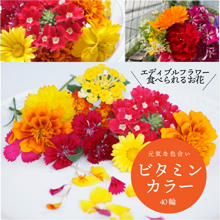 生花 エディブルフラワー 【ビタミンカラー ミックス】 40輪 食用花 デコレーション トッピング 製菓材料 ケーキ スイーツ 国産 クリスマス 焼き菓子 プレゼント ギフト お菓子作り クッキー缶 アイシングクッキー ウエディングケーキ