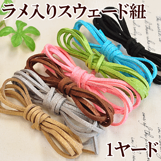 ラメ入り スウェード 紐 1ヤード 全7色 ■ スウェード平紐 アクセサリー パーツ 合皮 革紐 革ひも フェイクレザー スエード ペンダント ブレスレット ピアス イヤリング ラッピング タッセル ■