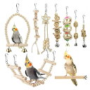 9点セット インコ おもちゃ バードトイ 鳥のおもちゃ 吊り下げ 鳥 鳥の遊び場 止まり木 原木 噛む玩具 ペットのタラップ橋 鈴付きオウムブランコ オウム生息棚 ストレス解消 セキセイインコ オカメインコ (9点セット)