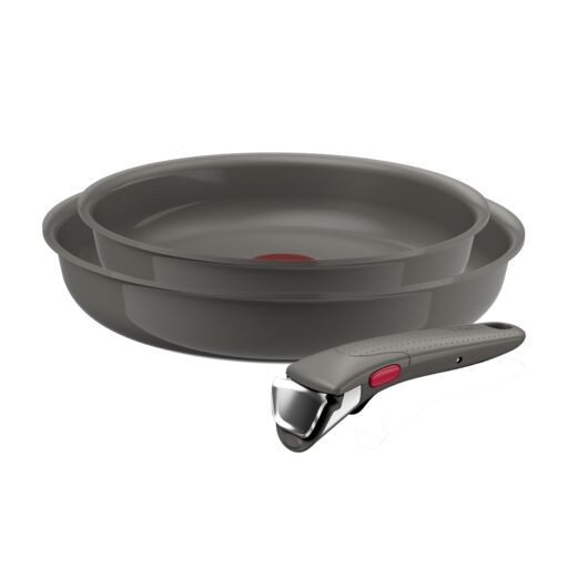 ■商品特徴■ ・取っ手がとれて、使い方自由自在! ・コンパクトに重ねて収納 ・そのままオーブンへ ・アツアツのままテーブルへ ・そのまま冷蔵庫へ ・ラクラク丸洗い ・料理をもっとおいしくする「お知らせマーク」 ・マークの模様が消えたら、予熱完了・適温の合図。 ・食材を入れるベストタイミングが目で見て分かります。 ・ティファールはPFOA・鉛・カドミウム不使用。安心してご使用いただけます。 ■製品仕様■ セット内容:フライパン22cm / フライパン26cm / 専用取っ手1本(アイスグレー) 生産国:フランス 熱源:ガス/電気プレートコイル/セラミックヒーター/ハロゲンヒーター/IH/電圧 食洗機:本体可 / 専用取っ手不可 ※食器洗い機をご利用される場合は、食器洗い機、およびご使用される洗剤の取扱説明書や使用上の注意をご確認のうえ、従ってください。