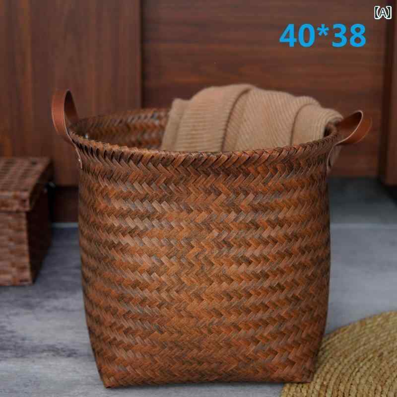 ( カスタムメイド) アメリカン 軽 贅沢 PU ハンドル 付き 手編み ランドリーバスケット 衣類 収納 バスケット おもちゃ 収納 バスケット(x100)