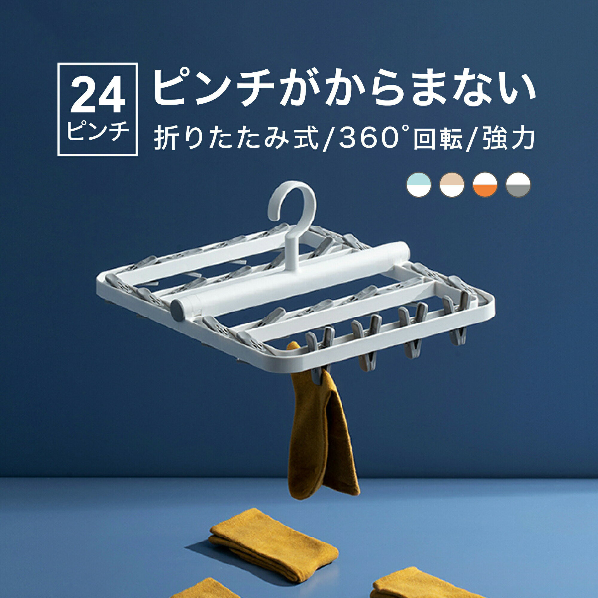 絡まない ピンチ ハンガー 折りたたみ 式 24 ピンチ ランドリー ハンガー デザイン ホワイト グレー ピンク ブルー 洗濯物 ハンガー クローゼット ワードローブ ベランダ 整理 整頓 衣類 収納 シンプル 新生活 折りたためる 360° 回転