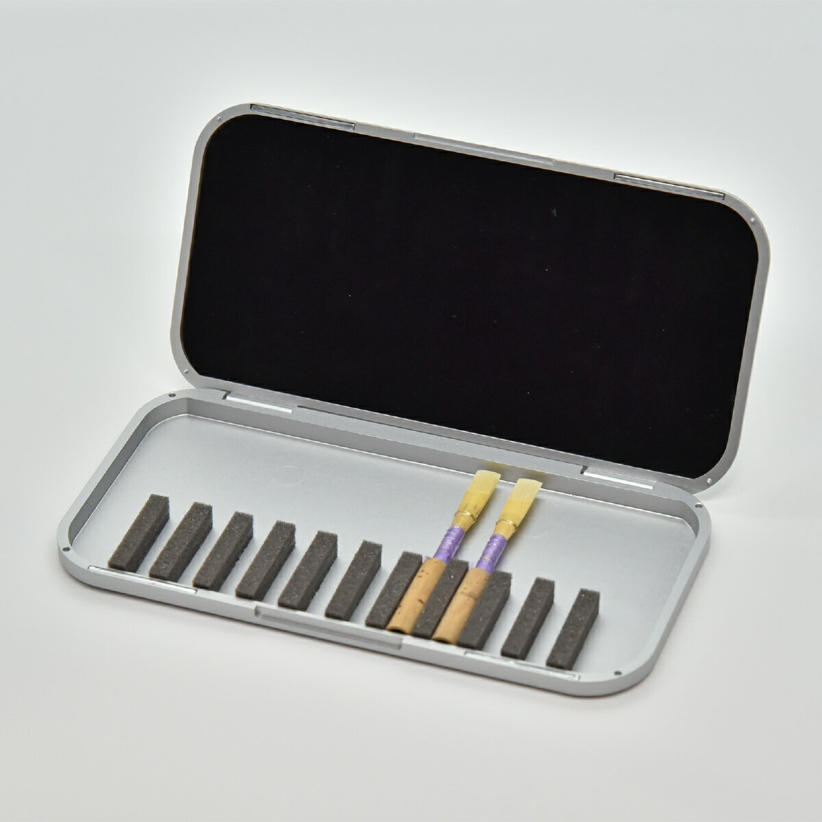 コンパクトかつスタイリッシュなリードケースが登場! アルミニウム製の堅牢かつ軽量なボディで、サイズは6.7インチサイズのスマートフォンとほぼ同等となっています。 開閉もマグネット式で簡単です。 ※蓋は固めの仕様となっていますので、開閉の際にはお気を付けください。 【楽器】オーボエ用 【収納枚数】10枚 【サイズ】約164mm×約84mm×約10mm 【重量】約118g ※こちらは「ブラック」のお届けとなります。