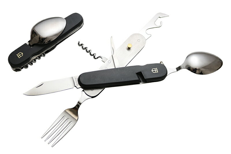 【ギフト対応可】【黒プラ S/F付7徳引割ナイフ】 KT-513 日本製 選べる無料ラッピング マルチツール 折りたたみキャンプギア 防災 災害対策 フォーク スプーン 缶切り キャンプ アウトドア レジャー キャンプグッズ 便利アイテム 万能グッズ カトラリー 携帯