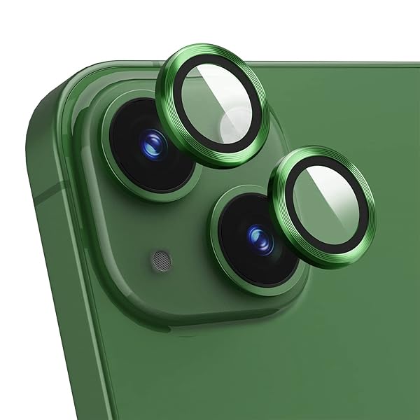 iphone 13/13 Mini 対応 レンズカバー カメラフィルム アルミ合金+9H硬度ガラス 露出オーバー防止 カメラレンズ保護 防塵 キズ防止 耐衝撃 粘着性強い 保護フィルム カメラカバー iphone 13/13 Mini (グリーン)