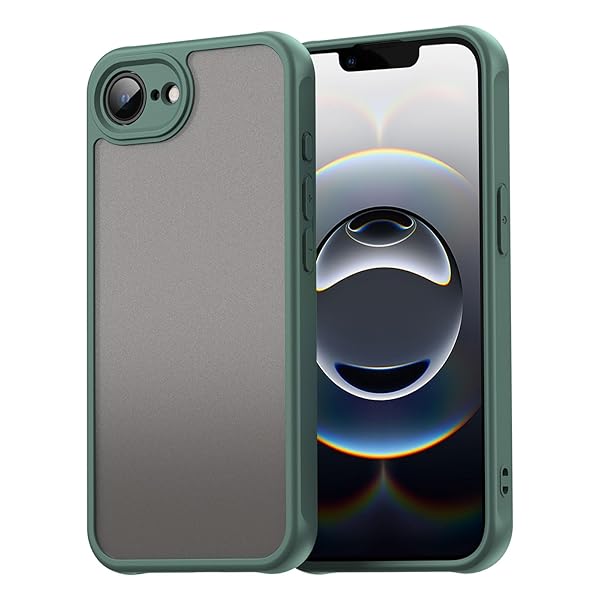 For iPhone 16e ケース iPhone 16e カバー マット感 半透明 TPU+PC レンズ保護 薄型 指紋防止 落下防止 安心保護 軽量 全面保護カバー (グリーン)
