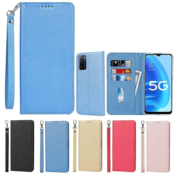 OPPO A55S 5G ケース 手帳 財布型 OPPOA55S 5G ケースoppo a55s 5g カバー 手帳型ストラップ付き PU皮革 明るい色 内蔵マグネット 携帯カバーカードポケット ブルー