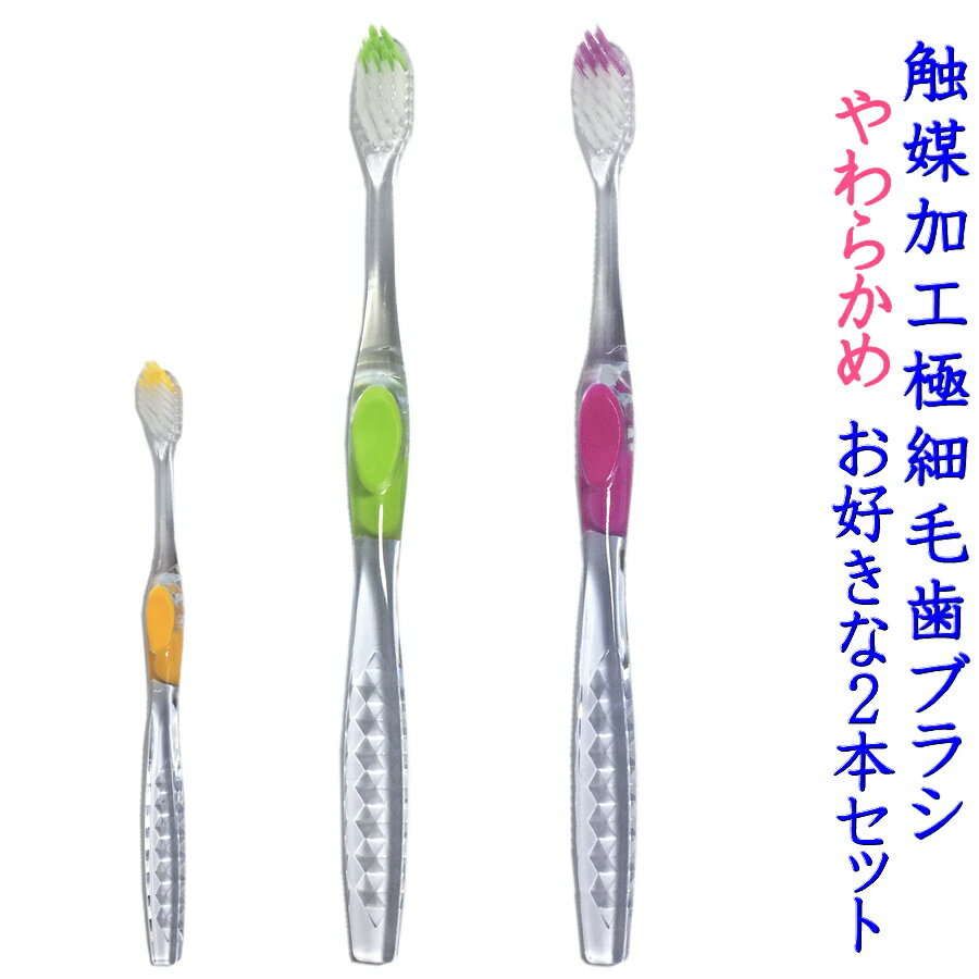 サムライ歯ブラシ 【やわらかめ お好きな色の2本セット】 極細毛 が歯間や隙間にしっかり届く新感覚の爽快な磨きあがり こどもにも おすすめ オシャレ で かわいい 人気のハンドル お水で磨ける 触媒 イオン プレゼント
