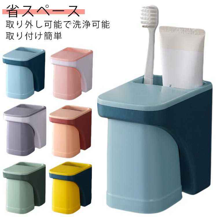 【2224円→実質2002円 P10! 2/10 1:59迄】歯ブラシたて 収納 ブルー コップスタンド 歯ブラシスタンド マグネット カップ スタンド 洗面所 壁掛け式 水回りすっきり 工事不要 穴あけ不要 グレー ピンク グリーン 歯ブラシホルダー 内蔵 吊り下げ式 壁掛け