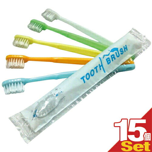 【最強翌日配送 ポスト投函 送料無料】【ホテルアメニティ】【使い捨て歯ブラシ】【個包装タイプ】業務用 粉付き歯ブラシ x15本 (全5色から当店おまかせ) - 業務用歯ブラシ。磨き粉が付着しているので、すぐに使える便利な歯ブラシ。【mail】