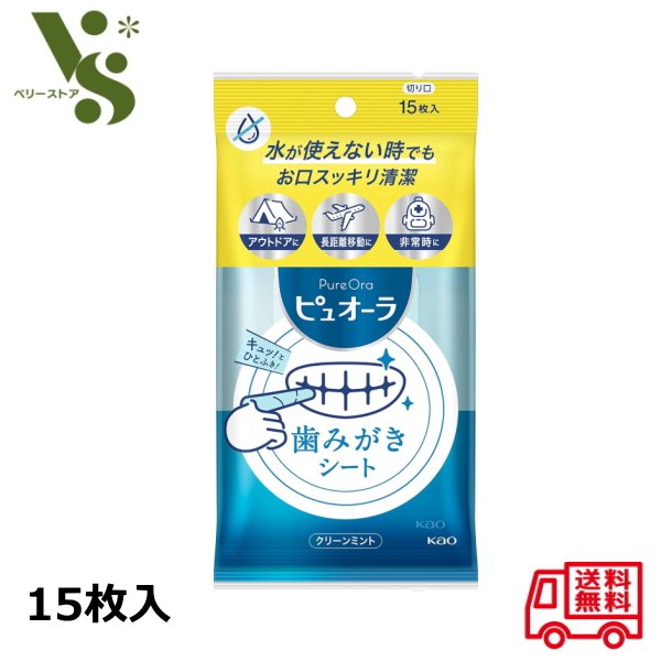 ピュオーラ 歯みがきシート 15枚入 花王 クリーンミント 防災用 非常用 長時間移動に 歯磨き 歯・口内の汚れ 口臭