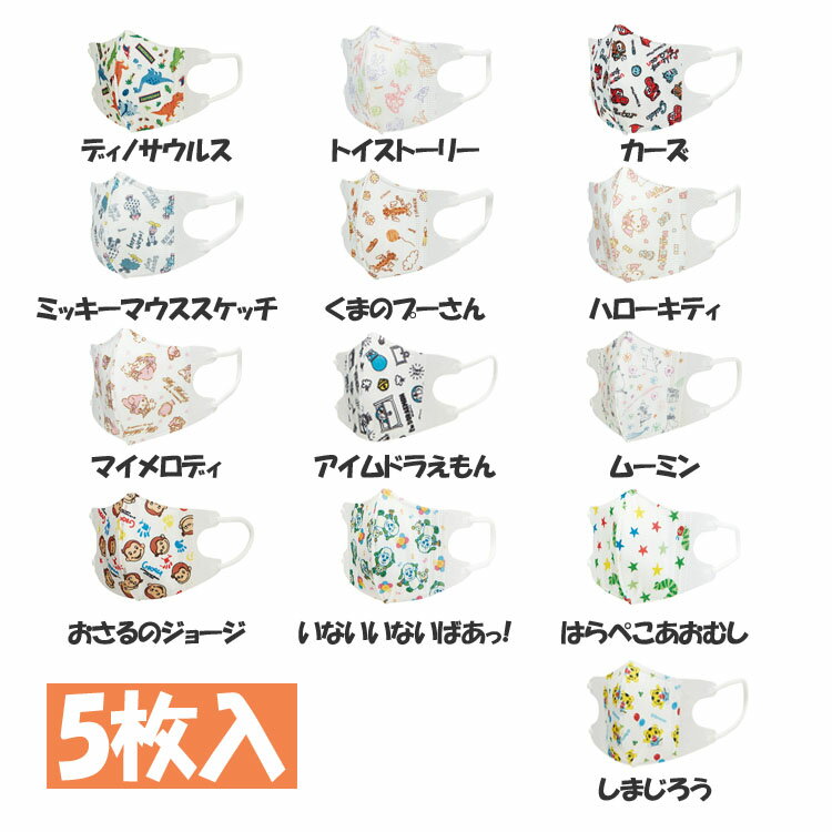 不織布 子供用 立体マスク ベビー 1〜3才用 5枚入り MSKB1送料無料 子供マスク 不織布マスク 立体マスク ベビーマスク 1〜3才用 5枚入り ディノサウルス 恐竜 トイストーリー ディズニー サンリオ ムーミン くまのプーさん しまじろう 【メール便】