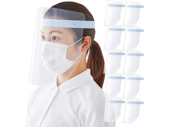 【レビュー投稿で100円OFFクーポン】プラス かんたん装着フェイスシールド ブルー 10枚 FG-013-10P 鼻 のど対策 メディカル