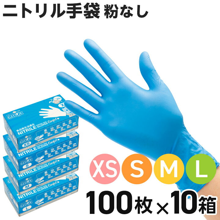 【12/4 20:00より★最大2,000円OFFクーポン】【訳あり品】 使い捨て手袋 ニトリルグローブ 100枚 × 10箱 パウダーフリー コンフォートプラス オーシャンブルー XS/S/M/L ニトリル手袋 粉なし ディスポグローブ ゴム手袋